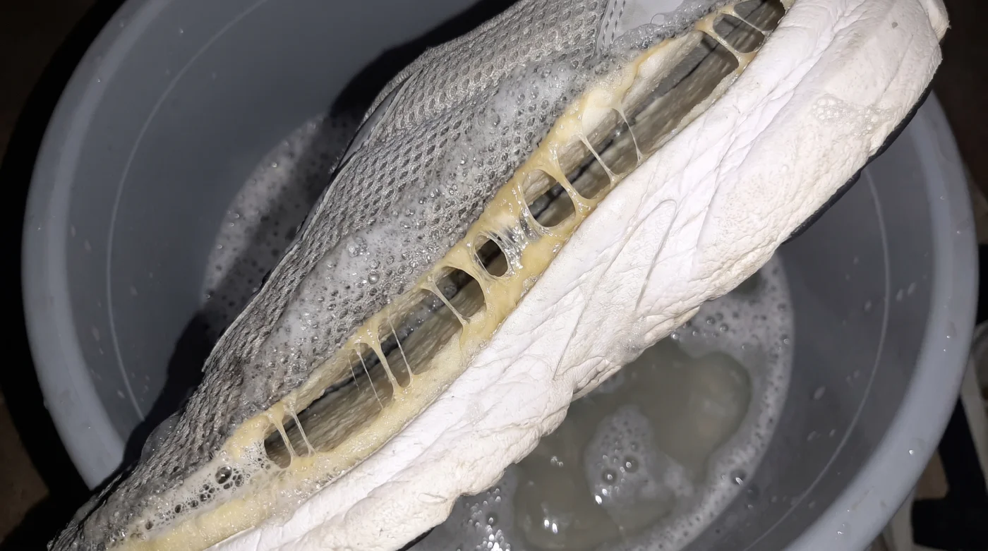 Quando le tiri fuori, sembrano quasi perfette. La tomaia brilla sotto la luce del bagno, l’odore sgradevole di umidità e asfalto è scomparso del tutto. Eppure, proprio in quel momento di apparente trionfo domestico, hai innescato un declino invisibile. Sotto la superficie intonsa e profumata, la struttura ingegneristica che sorregge morbidamente i tuoi passi si è appena arresa alla fisica.