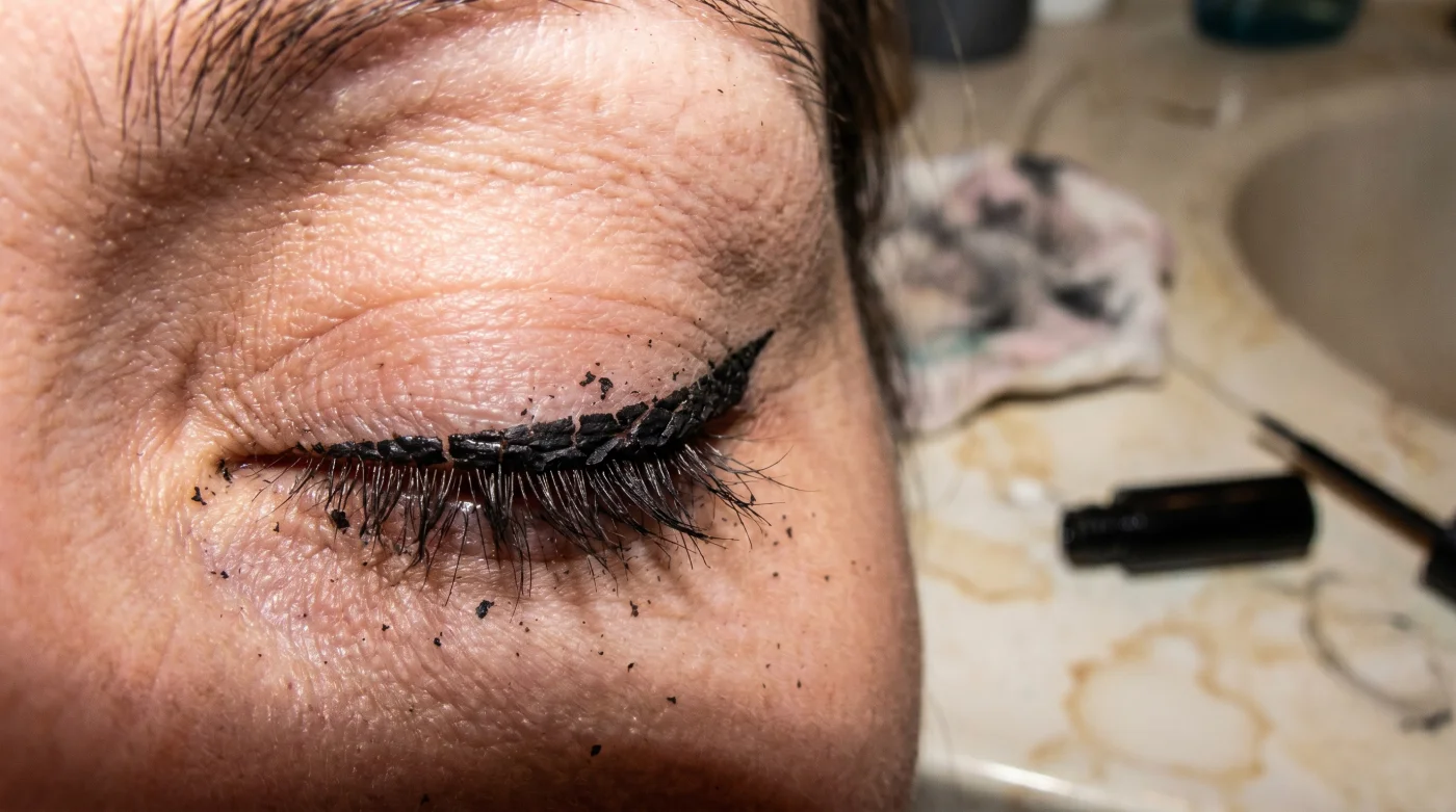 Quando stendi il prodotto, queste microscopiche cavità invisibili si depositano lungo la rima ciliare. Man mano che l’acqua o il solvente evaporano, le bolle scoppiano lasciando crateri, trasformando una traccia compatta in una superficie porosa. La pellicola, che dovrebbe essere un nastro elastico continuo, diventa un pizzo fragile pronto a spezzarsi al primo battito di ciglia.