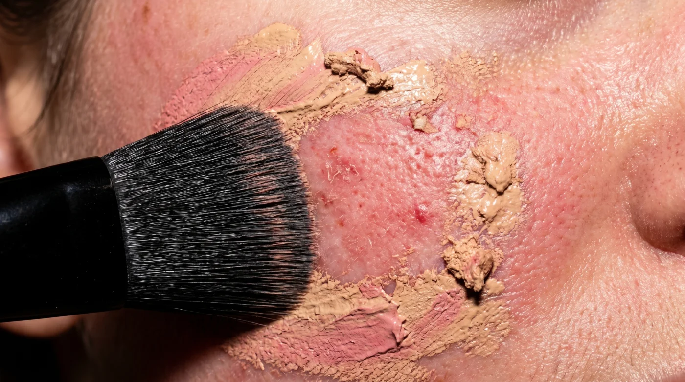 Il primo tocco sembra innocuo, ma al secondo passaggio accade il disastro. Il colore si aggrappa in modo irregolare e, guardando da vicino, noti il vero tradimento: la pelle nuda affiora improvvisamente attraverso una macchia rosata. Il fondotinta non c’è più, sciolto e spazzato via come sabbia sotto un’onda.