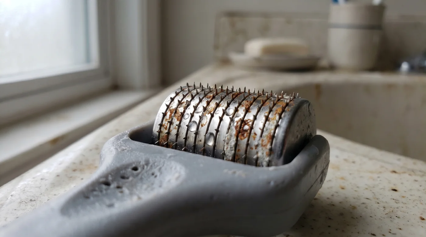 Non si trattava di scarsa igiene del viso o di usura naturale dello strumento. Il colpevole era l’eccesso di acqua nei disinfettanti da banco che innescava una ruggine microscopica, piegando letteralmente il millimetro finale dell’ago. Lo strumento casalingo diventava così un minuscolo erpice che graffiava i tessuti invece di stimolare delicatamente il collagene superficiale.